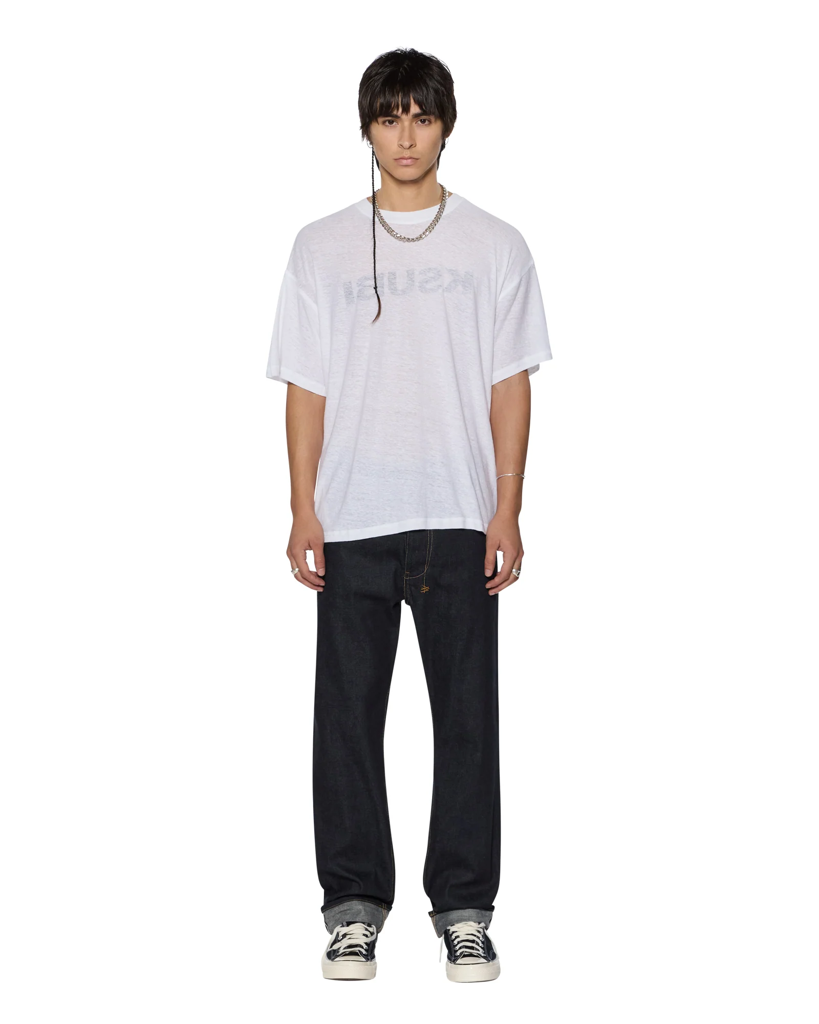 The Hazlow Selvedge Raw Blue is a mid-rise relaxed straight-leg jean with a regular leg opening. Manufactured in Portugal with a sustainable approach to fabric and laundering processes, it is cut from a 13.5oz rigid European indigo selvedge denim with no wash. Finished with Ksubi signature T-box and 4x4 embroidery, a custom selvedge pocket tag, and Ksubi branded hardware.